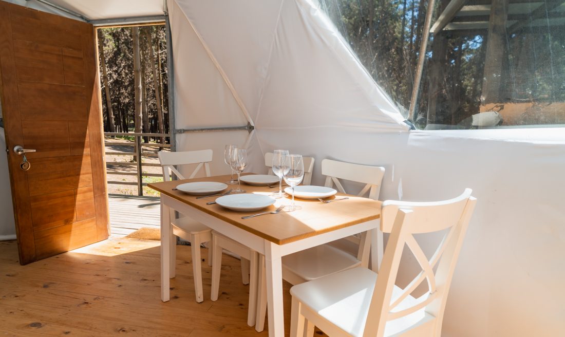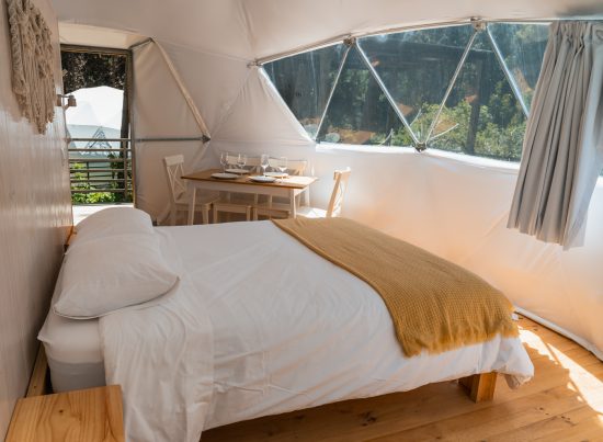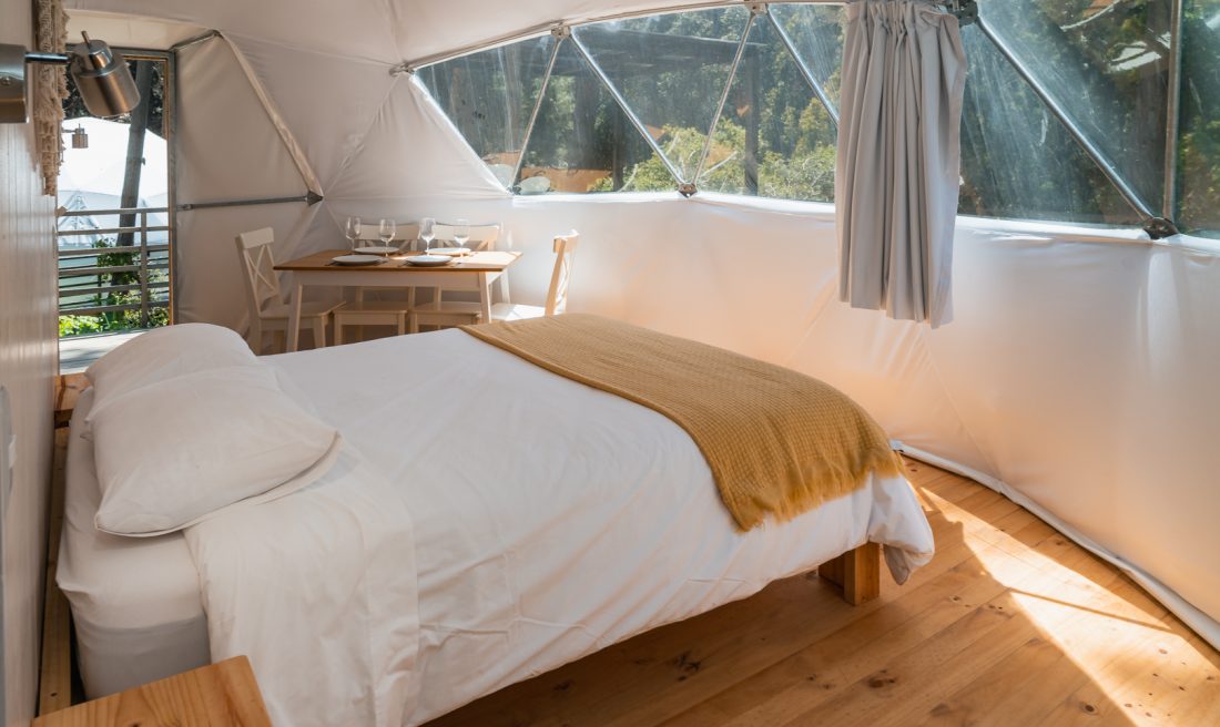 Cada Domo cuenta con capacidad para hasta 4 personas y lleva el nombre de un ave local: Picaflor, Caquén, Chincol y Tricahue.