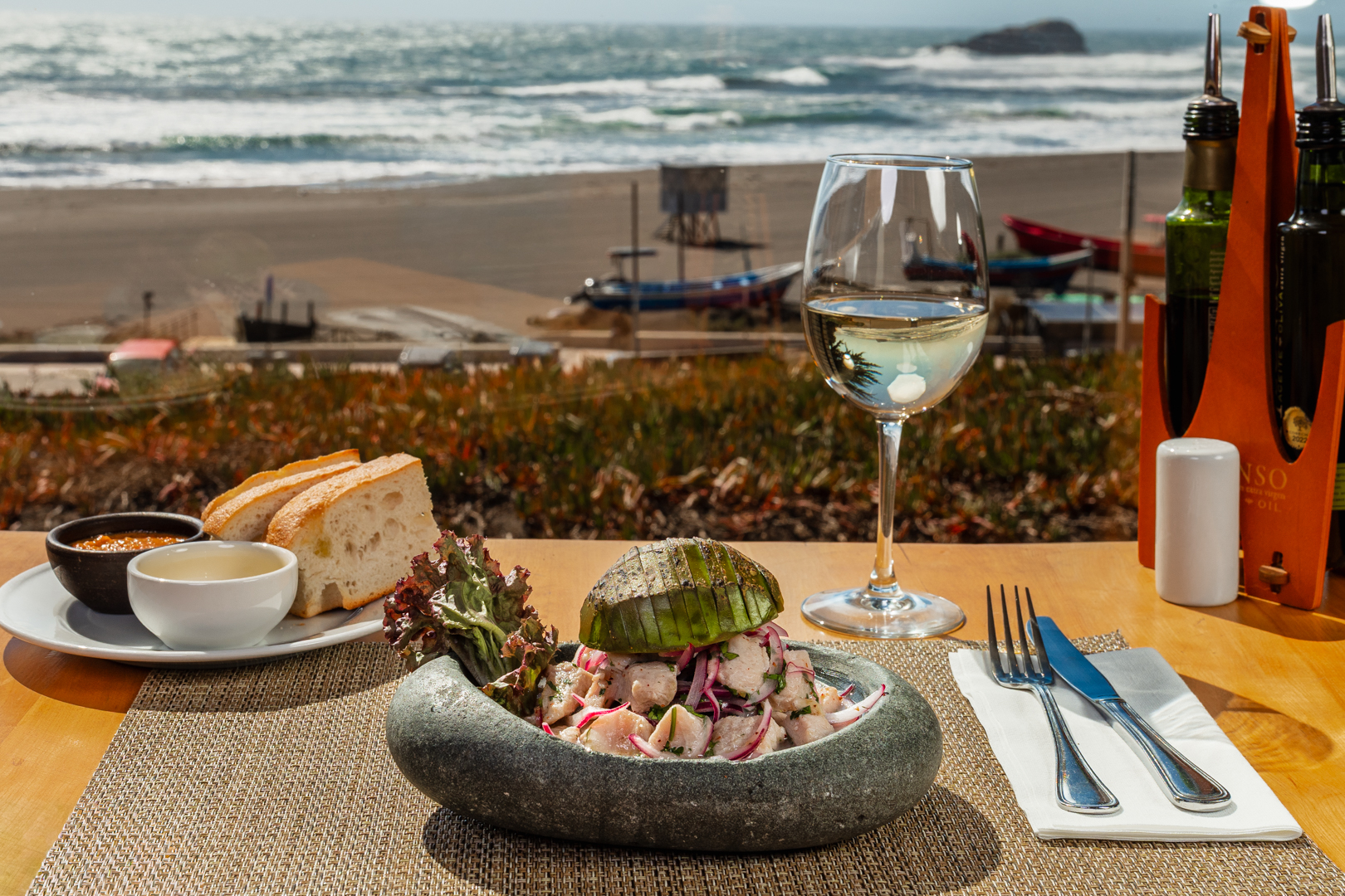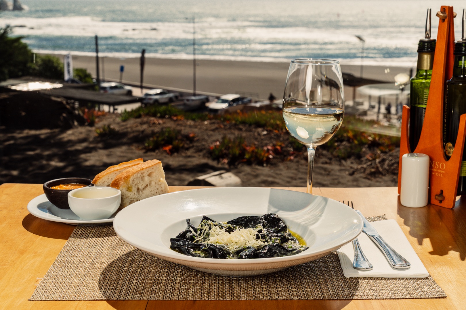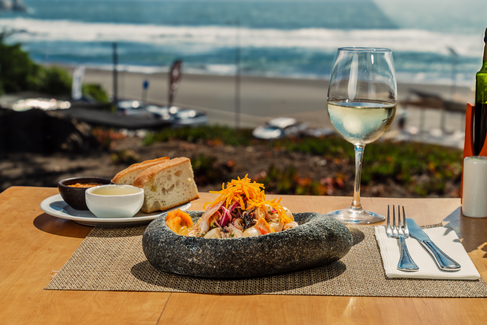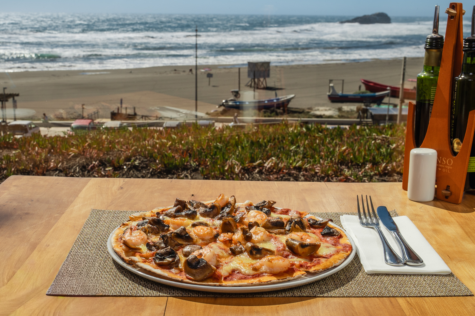 Su carta incluye ceviches, pescados, sandwiches, pizzas, pastas, postres caseros y una selección de coctelería, jugos y vinos, con preparaciones pensadas para acompañar la experiencia de playa y el entorno natural.